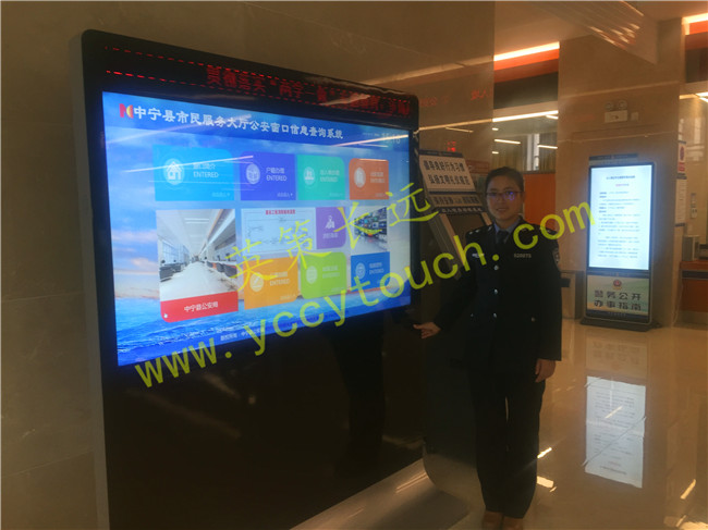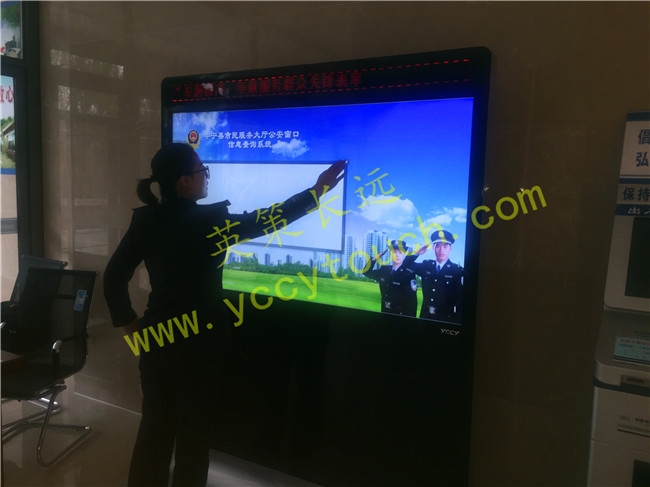 此次下屬公安部門與英策公司合作定制的70寸觸摸查詢系統,更好的展示公安系統服務的形象,辦事更透明,群眾更放心.