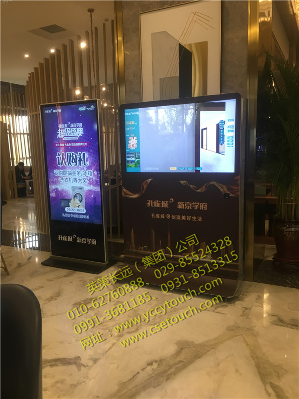 圖為我英策公司為沈陽孔雀城·新京學府安裝了1000-55寸落地式大尺寸觸摸查詢機。