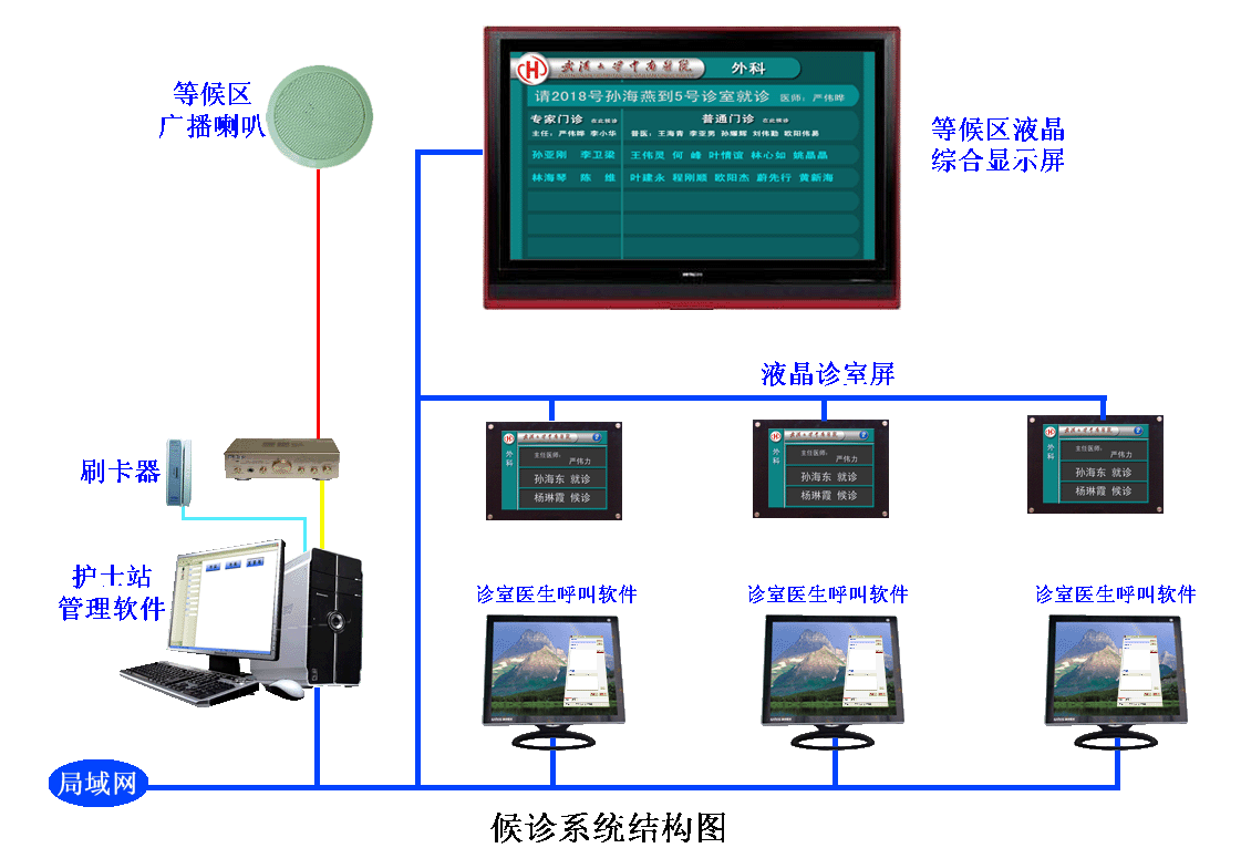 17、通過硬件呼叫器可顯示等待人數及當前病人就診序號;