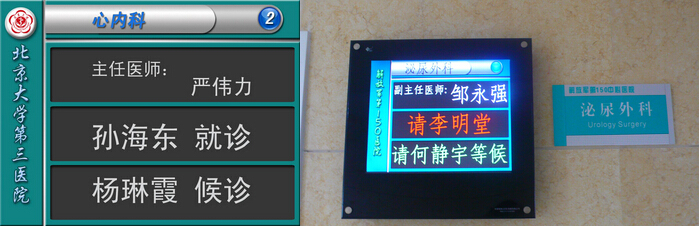 診室屏采用液晶顯示屏,內部采用嵌入式媒體終端機,優點美觀,顯示內容不受電視限制,隨意這是字體大小和內容。