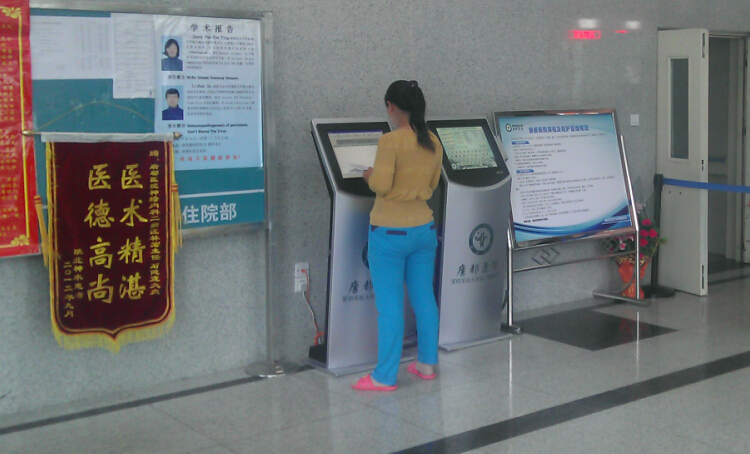 英策觸摸查詢系統能使患者能及時了解醫院各種收費項目、各種藥品的最新價格信息,方便患者查詢本人的預繳金余額、自助取單、門診診療費用、門診醫療收據、住院費用明細、住院在科記錄、醫生信息介紹、醫德醫風評價等功能。