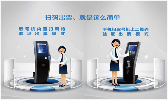 2)叫號機內嵌掃碼槍的大廳?蛻魧㈩A約單上的二維碼,對著叫號機的掃碼口,嘀,驗證取票,非常高端、大氣。