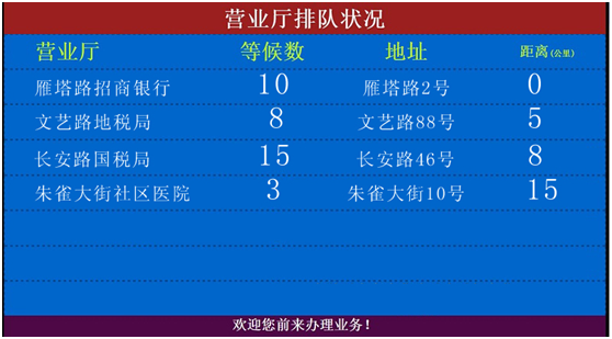 相信很多人有過這樣的經歷:要去銀行、稅務大廳辦事,花半小時到達銀行,取號,然后再等上30-60分鐘甚至兩個小時時間,然后花上10-15分鐘甚至更少時間用于實際辦業務;還有的人取了號,然后出去辦事,估摸著時間折返回營業廳——時間的拿捏當然是很困難的,因為你無法準確的估算每個人辦業務花費的時間,人數越多,這種時間越難把握。