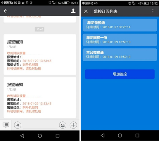 當取號出現故障,如大廳叫號機斷網,排隊量突增,系統將立即報警,并發送到負責人的微信上,可第一時間做出決策和應對處理。