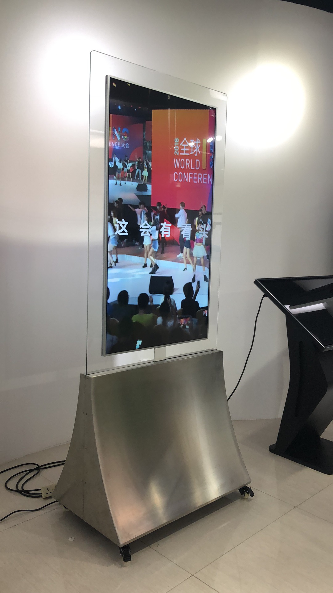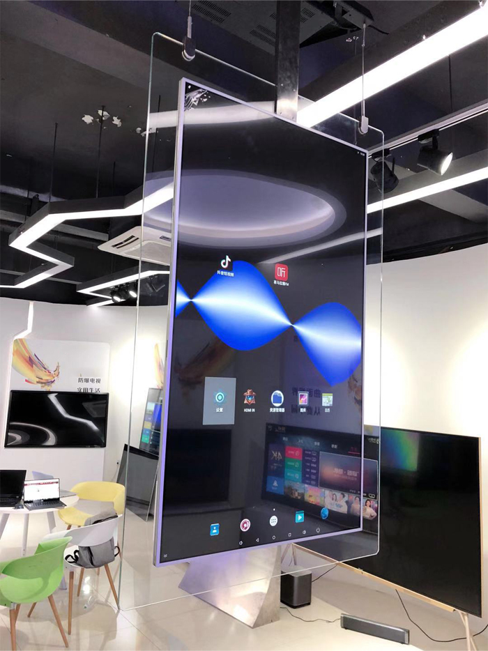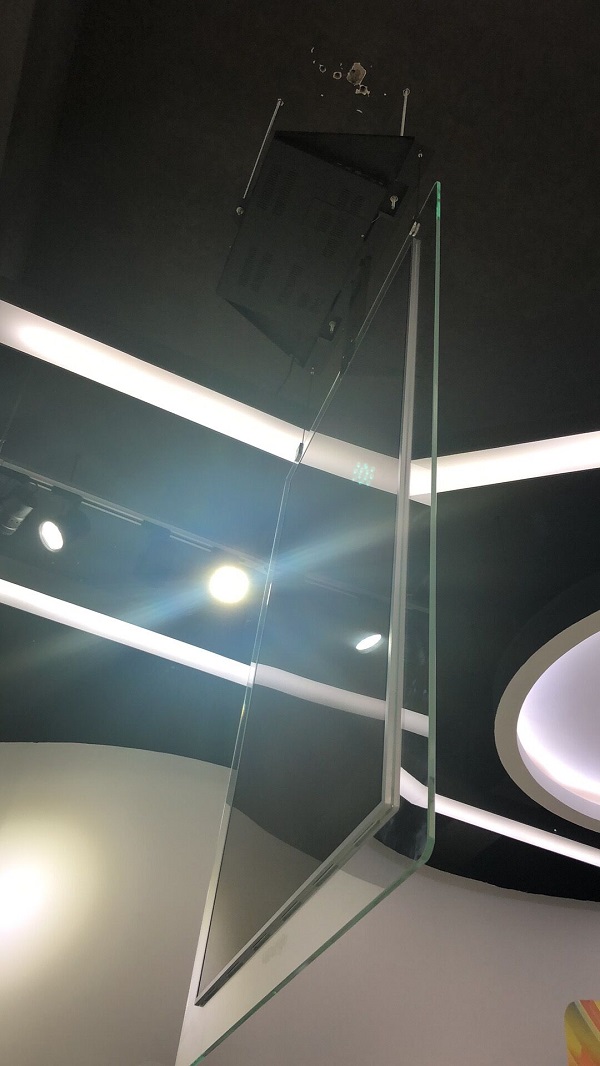 在In Glass OLED中,兩個OLED面板背靠背放置,然后嵌入鋼化玻璃框架內。由于周圍的玻璃是透明的,它的顯示器似乎是漂浮的,幾乎在任何空間都需要注意。這兩個面板能夠播放獨立的內容,在每一面顯示不同的品牌或消息。